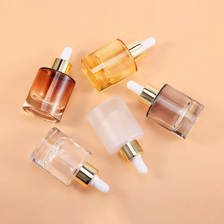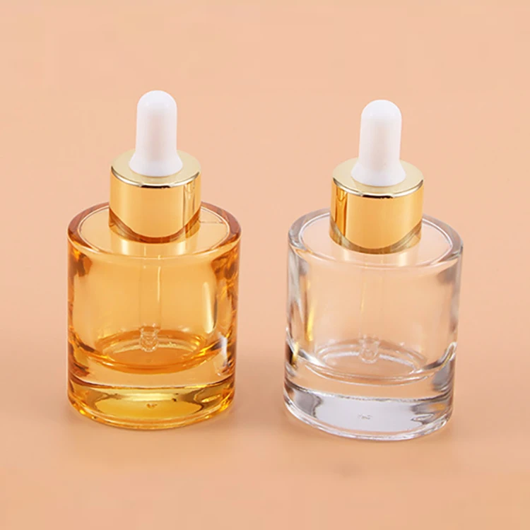 Luxury Cosmetic Packaging 30ml Glass Dropper Bottle Oval Shape Lotion Bottle 30ml with Electroplating Gold Cap