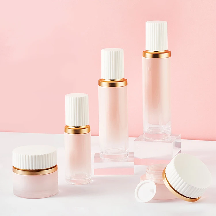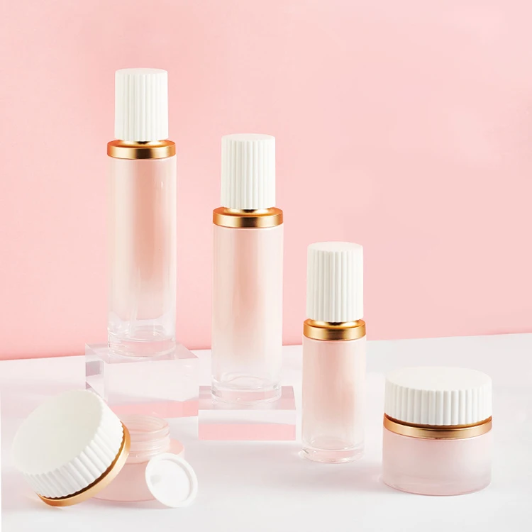 Luxury 30ml 50ml Pink Skincare Cosmetics Packaging Face Cream/lotion Glass Dropper Essential Oil Bottles Cosmetic Bottle Sets