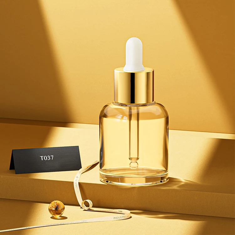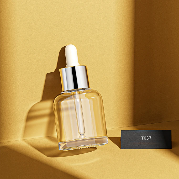 30ml White Push Dropper Thick Bottom Glass Bottle Feels Great with Special Striped Cap Design