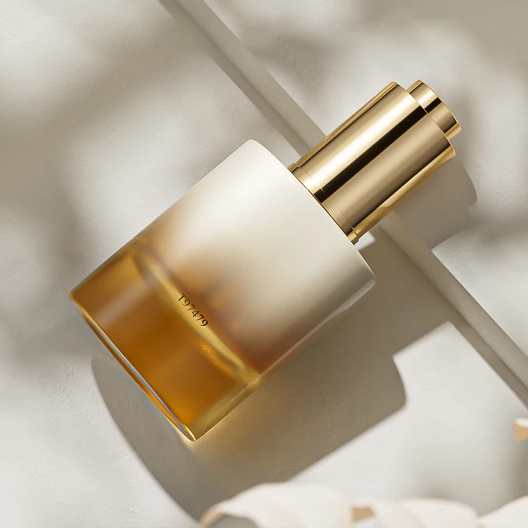White Stripes and Gold Lid with Luxurious White Set Glass Bottle Hot Stamping Gold LOGO Can Be Customized in Various Colors