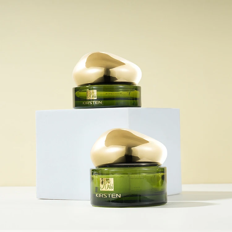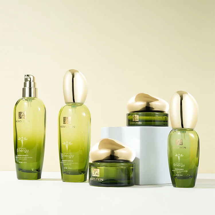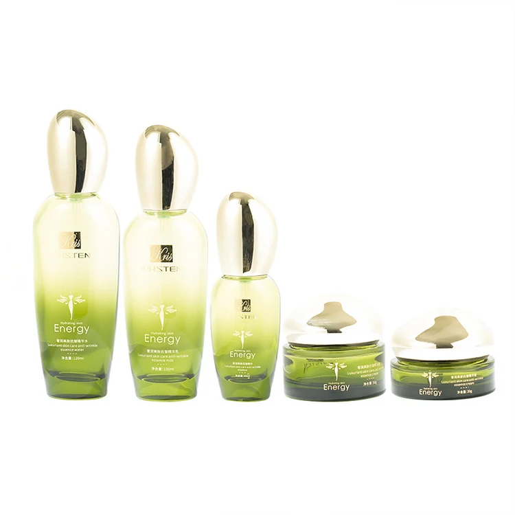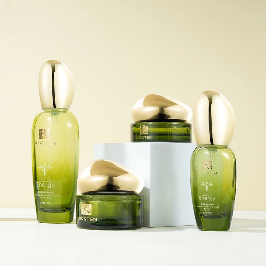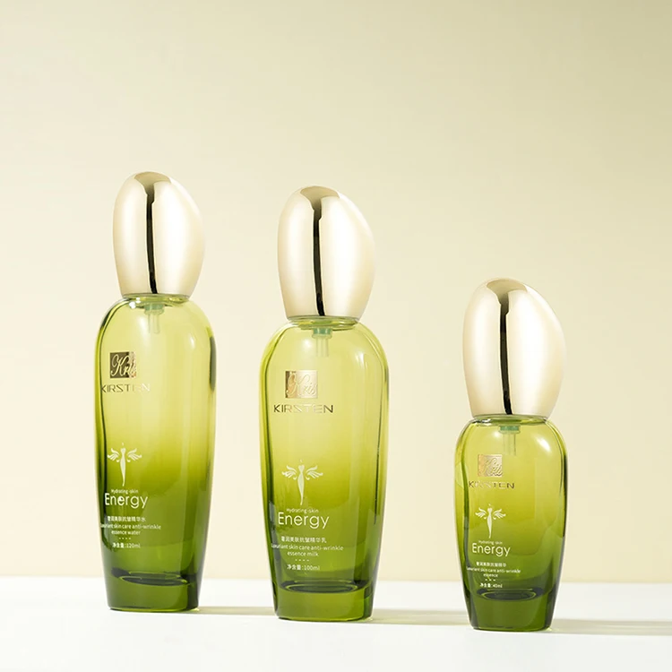 Skin Care Product Glass Bottle Set Oval Special-shaped Egg Shaped Lid Translucent Green Gradient Paint 50g Jar 40ml Pump Bottle