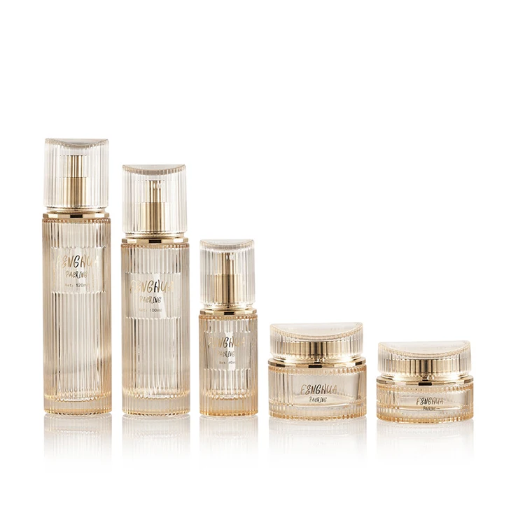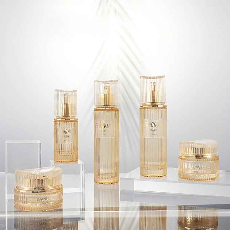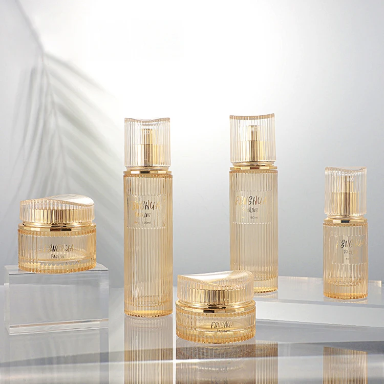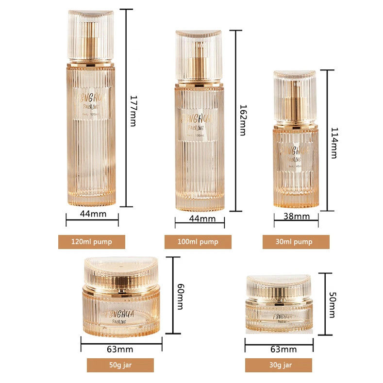 Golden Translucent High-quality Cosmetic Bottle Packaging 30ml 100ml 120ml Lotion Bottle 30g 50g Jar with High End Acrylic Lid