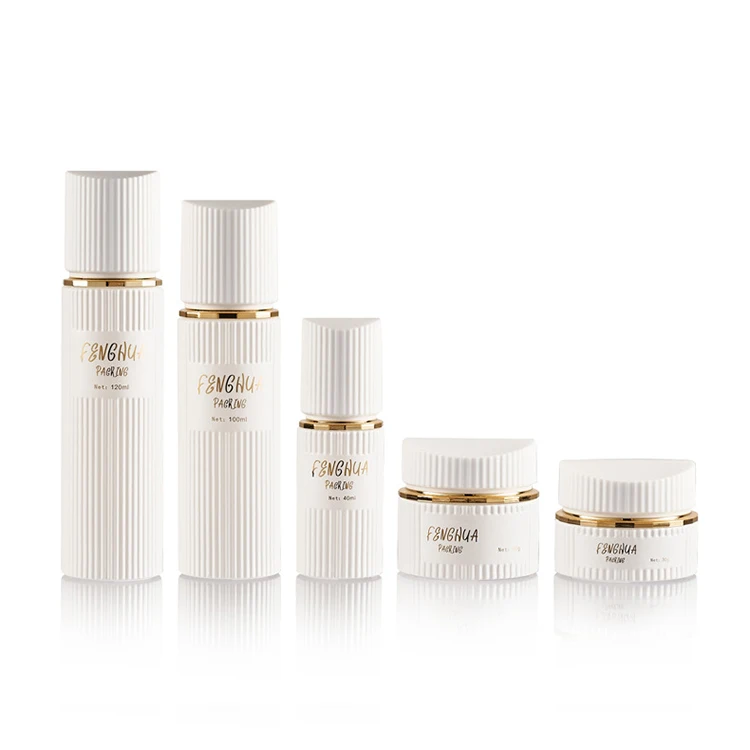White Stripes and Gold Lid with Luxurious White Set Glass Bottle Hot Stamping Gold LOGO Can Be Customized in Various Colors