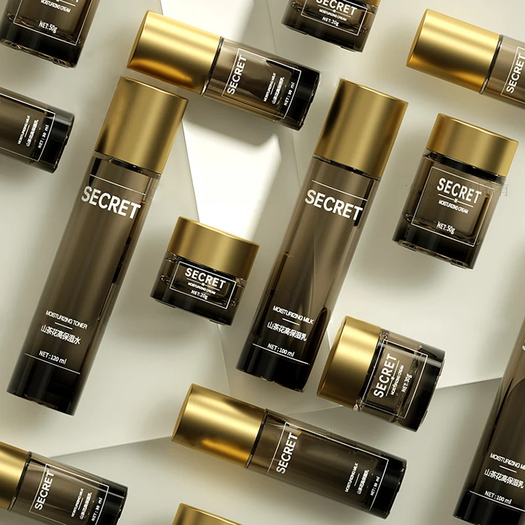 High Quality square Bottle Design with Gold Special Design Lid 20g 50g Jar 40ml 100ml 120ml Pump Bottle