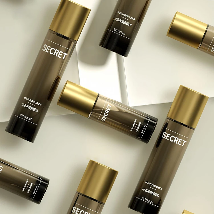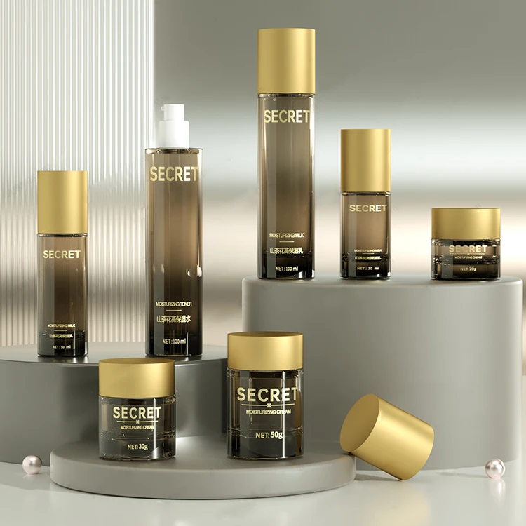 High Quality square Bottle Design with Gold Special Design Lid 20g 50g Jar 40ml 100ml 120ml Pump Bottle