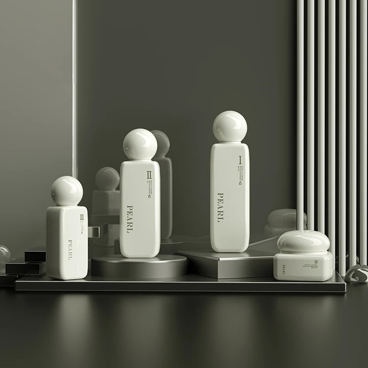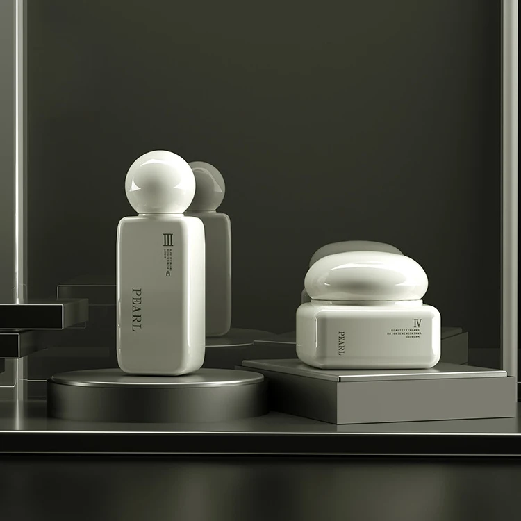 Rectangular Cosmetics 40ml 100ml 120ml Glass Lotion Bottle 50g Jar for Men's Cosmetics with Spherical Lid