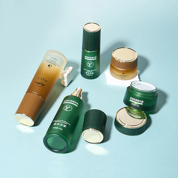 High End 30ml/50ml Glass Bottle 30g/50g/100g Jar Pump Bottle Set for Skin Care Face Cream Lotion Serum Eye Drop for Cosmetics