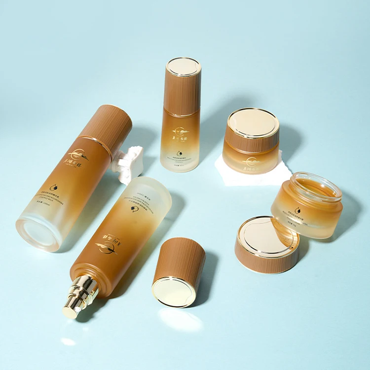 40ml 100ml 120ml Amber Gradient Glass Bottle with Exquisite Striped Lid for Luxury Cosmetic Packaging
