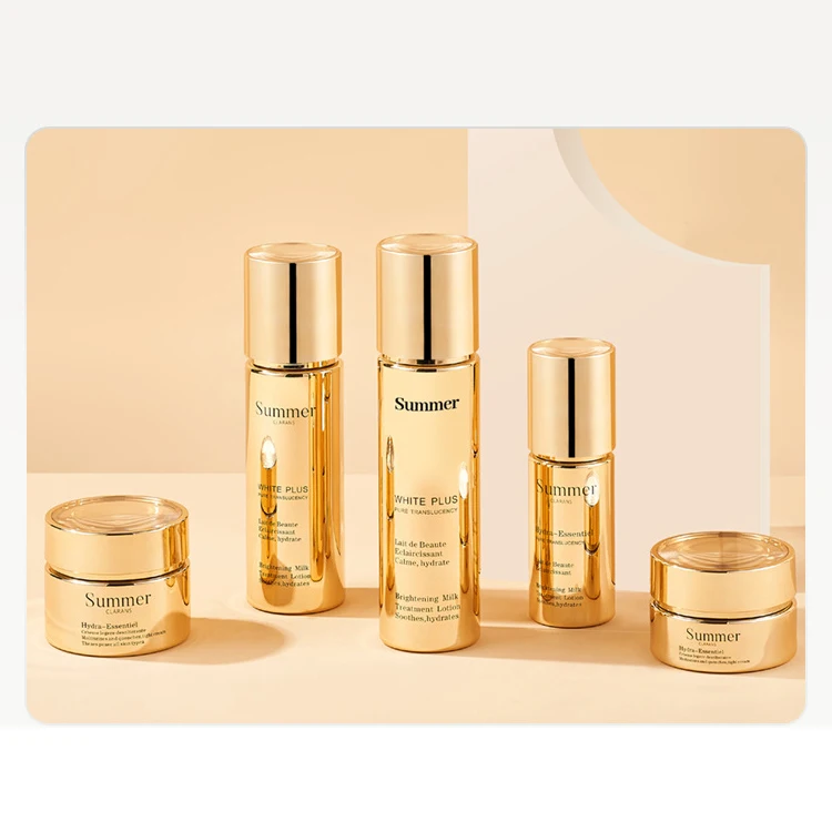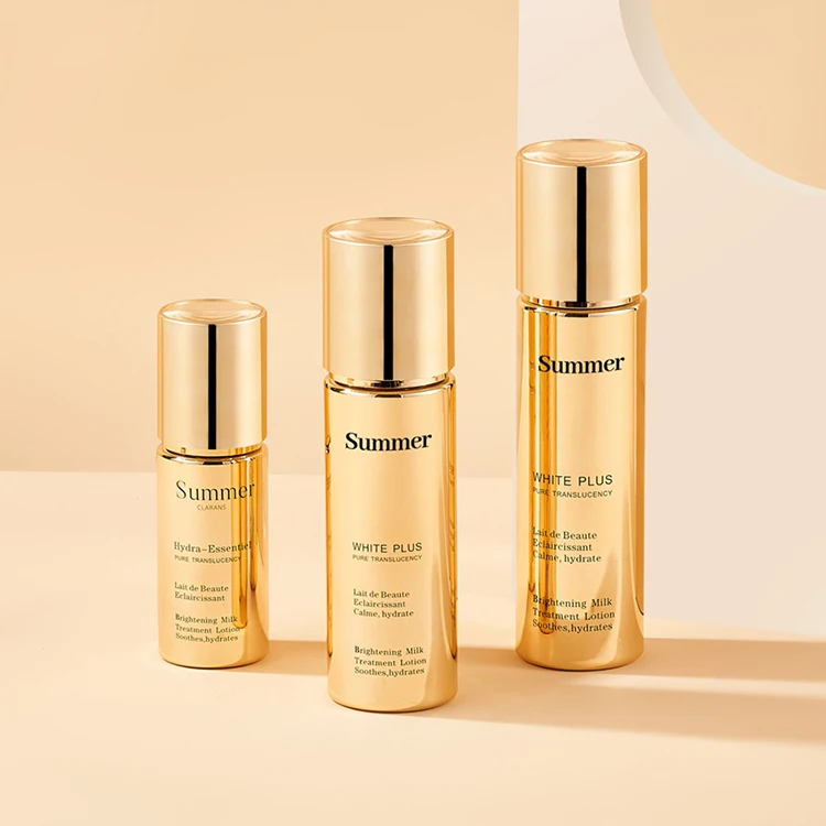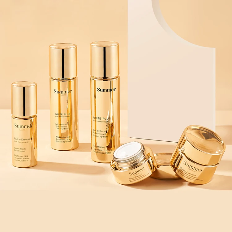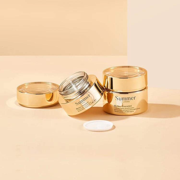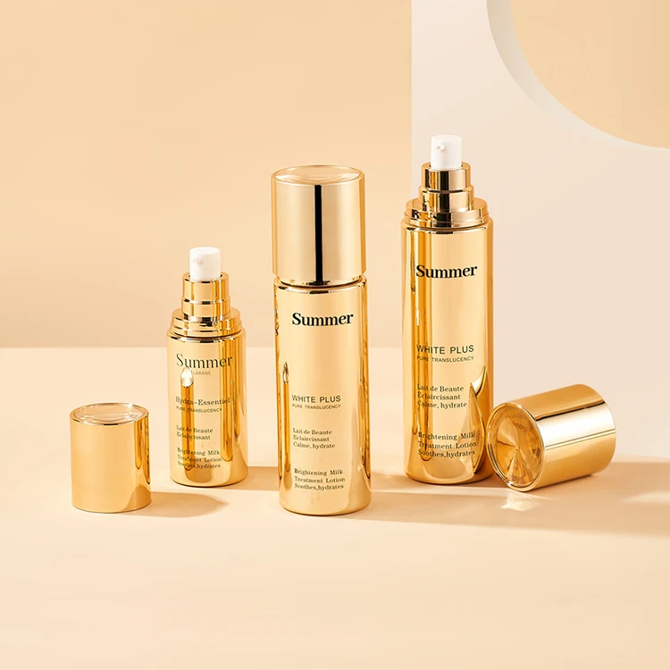 Advanced Custom Electroplating Gold Cosmetic Packaging Glass Bottle 40ml 100ml Pump Bottle 30g 50g Glass Cream Jar