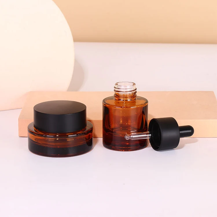 High End 30ml/50ml Glass Bottle 30g/50g/100g Jar Pump Bottle Set for Skin Care Face Cream Lotion Serum Eye Drop for Cosmetics