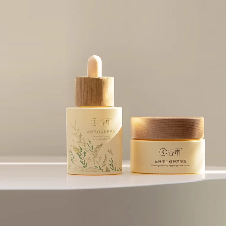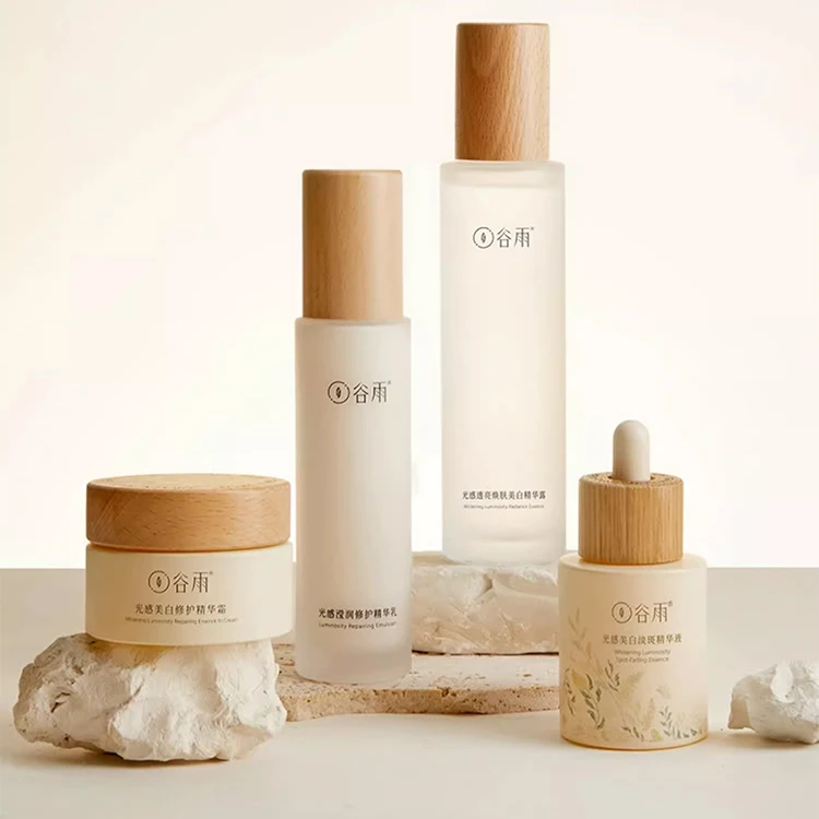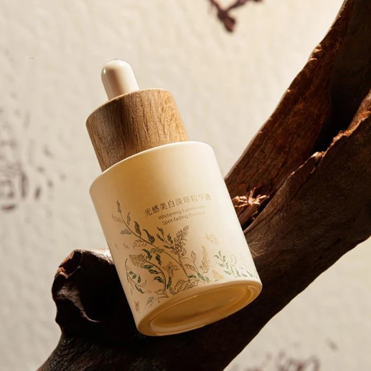 Advanced Customized Ash Wood Cover Series Cosmetic Glass Bottle Packaging Bamboo Dropper Bamboo Wood Cover Glass Bottle