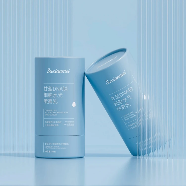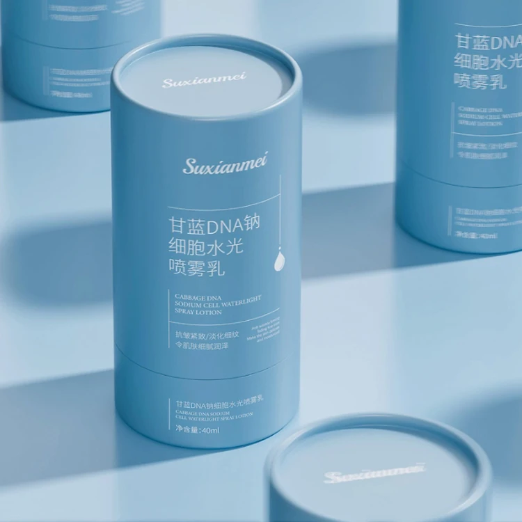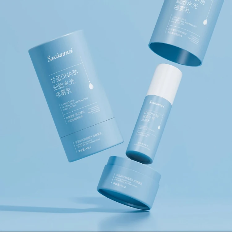 One-stop Factory Customized 20ml 30ml 40ml 50ml 60ml 80ml Blue Spray Glass Bottle With Luxury Round Paper Tube