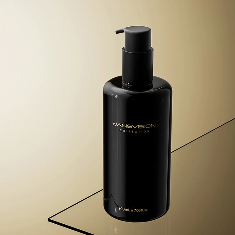 Black Raw Material Glass Bottle Set 200ml 100ml Pump Porcelain Black Glass Bottle Black Jade Glass Jar