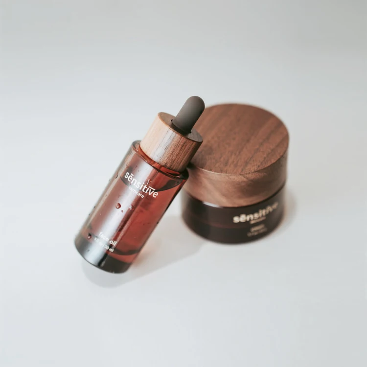 High-end Customized Walnut Lid Glass Bottle Set Dark Wood Lid Cream Jar Personalized Custom Glass Packaging