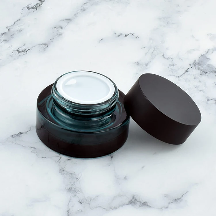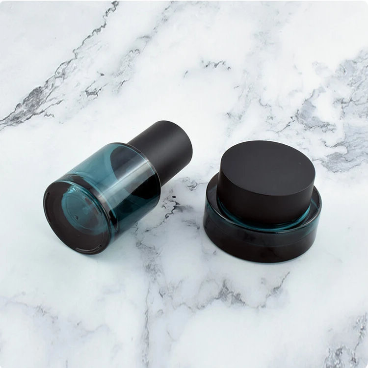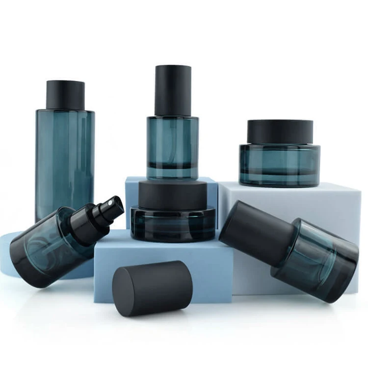 Luxury Blue Glass Bottle Jar Sets for Skin Care Cosmetics New Design 50g 40ml 100ml 120ml Flat for Eye Drops Customizable OEM