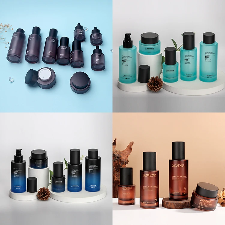 High End 30ml/50ml Glass Bottle 30g/50g/100g Jar Pump Bottle Set for Skin Care Face Cream Lotion Serum Eye Drop for Cosmetics