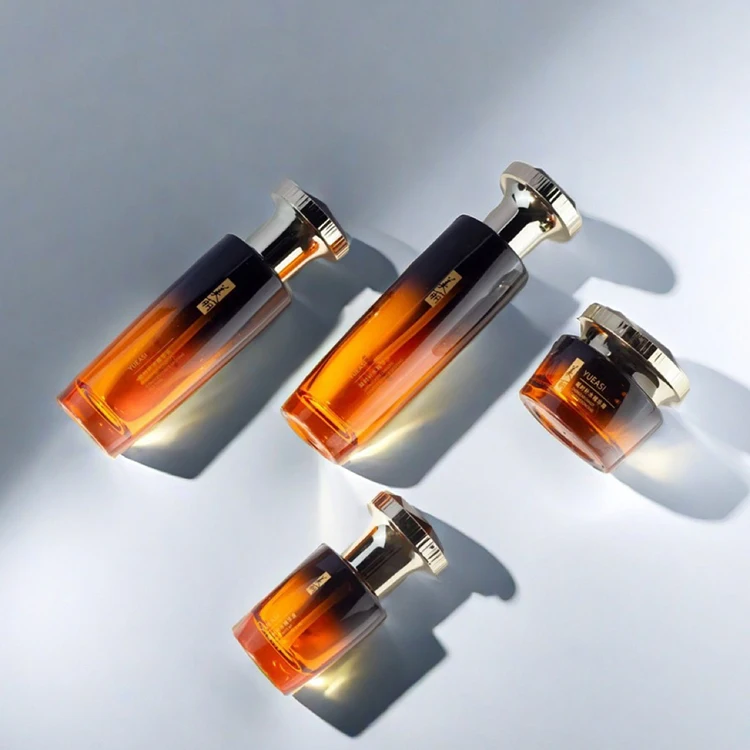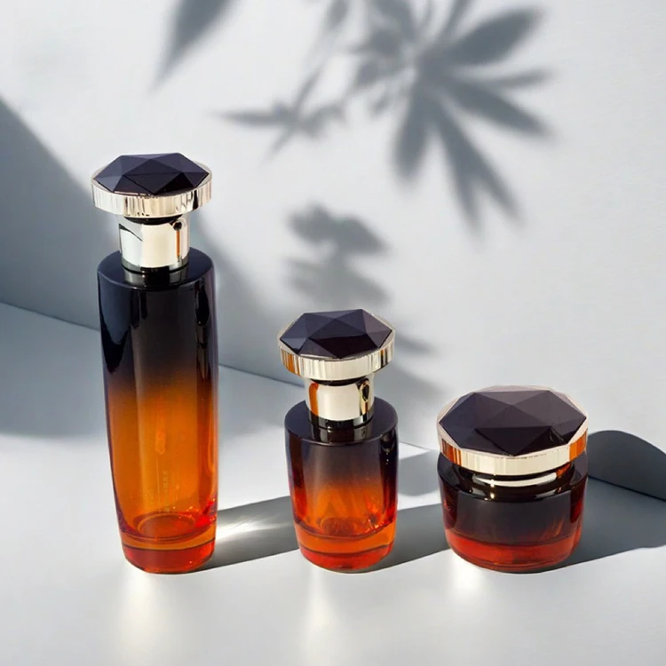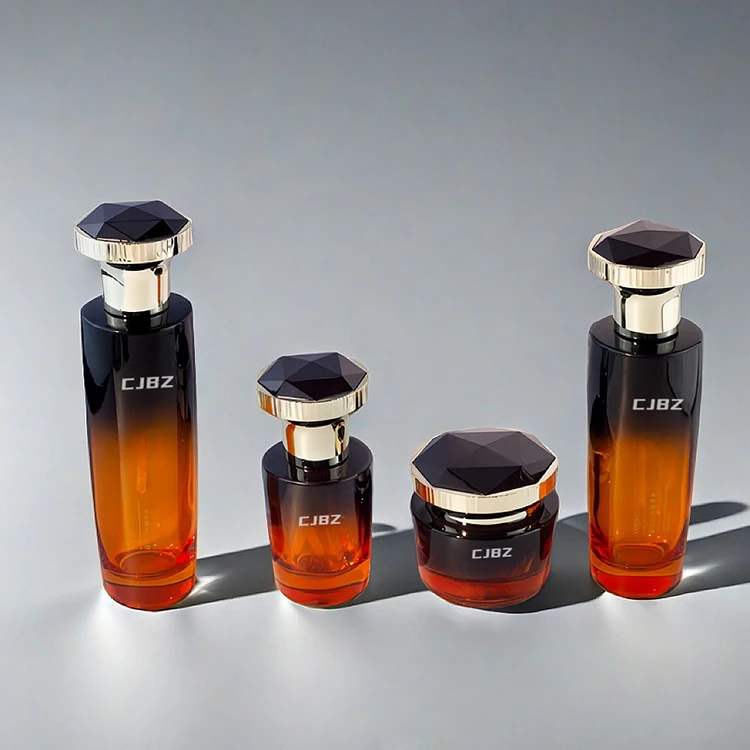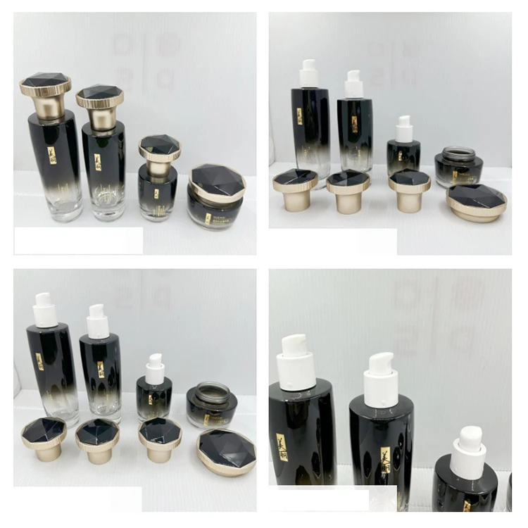High Quality Wholesale Custom 100ml 120ml Black Gradient Glass Pump Bottle 40ml 50g Jar Personalized Diamond Cap Set Face Cream