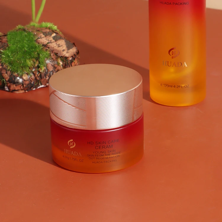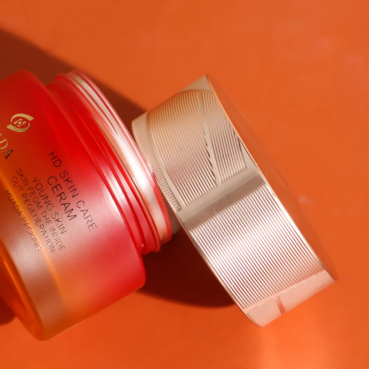 Elegant 50g 30g Cream Glass Jar with Matt Gold Lid Red to Orange Frosted Gradient for Horse Oil Cream Packaging for Cosmetics