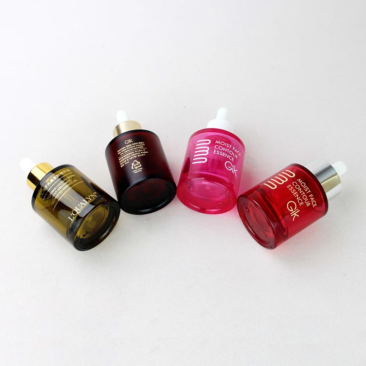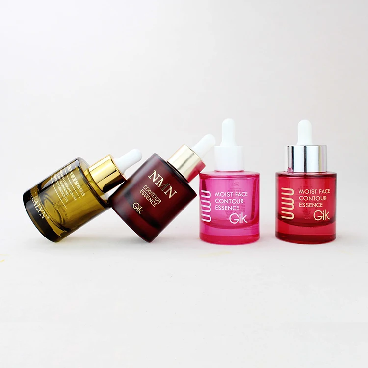 Free Sample 30ml/1oz Private Label Cylinder Beard Oil Cosmetic Packaging with Red Coloured Dropper Bottle Screen Printed Surface