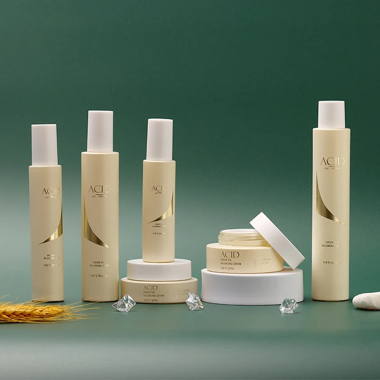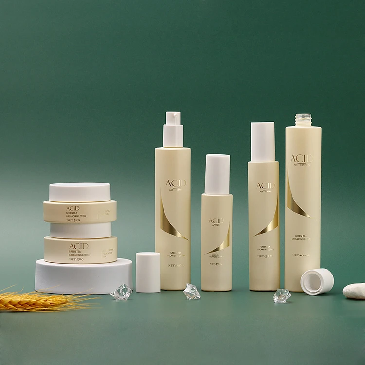 Unique Beige Glass Pump Bottle for Cream 80ml 100ml Slim Design Cosmetic Packaging 30g 50g Glass Jar Screen Printing Surface