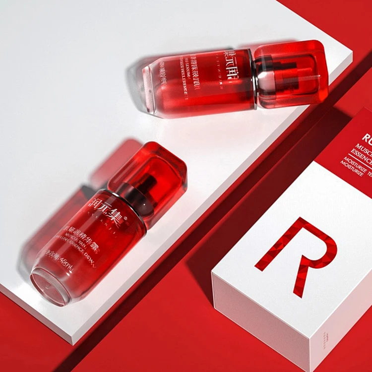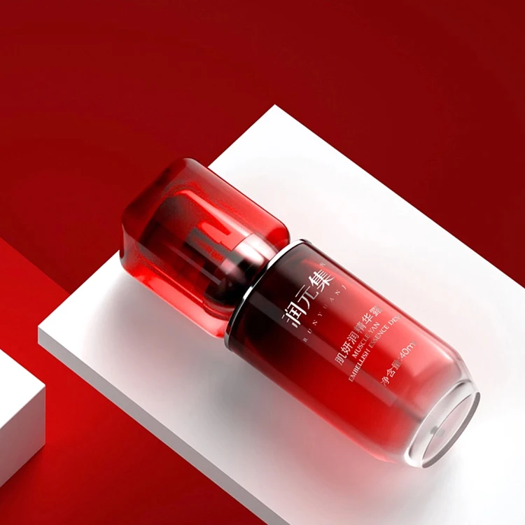 OEM Customizable 40ml Red Matt Skincare Pump Bottle Exquisite Acrylic out Cap with Oval Box Use for Eye Cream