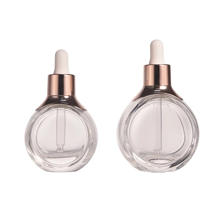 Custom 50ml Skincare Serum Glass Bottle with Dropper round 30ml 1oz Ounce Screen Printing Use for Eye Drop Electroplating