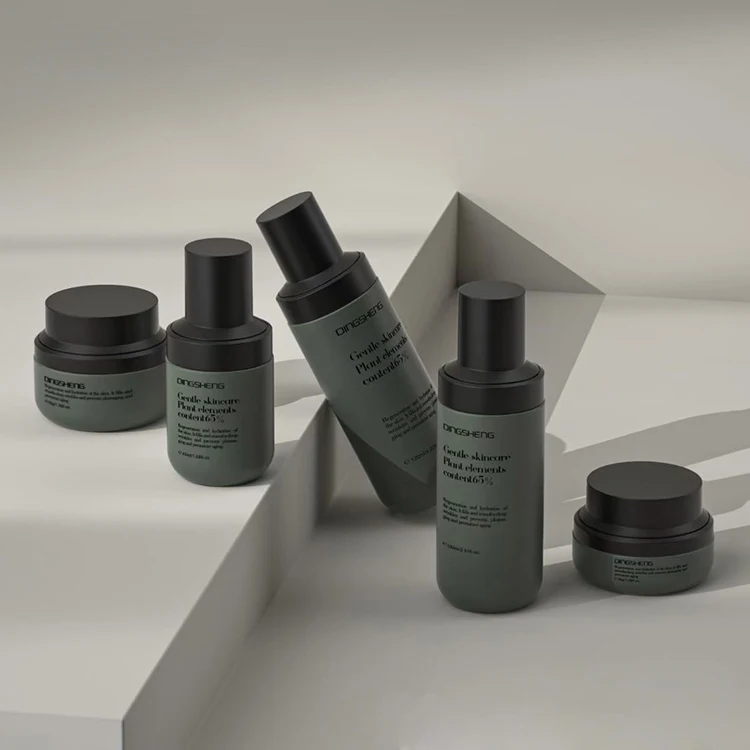 Custom Logo Luxury Matte Black Cosmetic Packaging Glass Lotion Bottle 40ml 120ml Mist Sprayer Bottle 50g Face Glass Jar