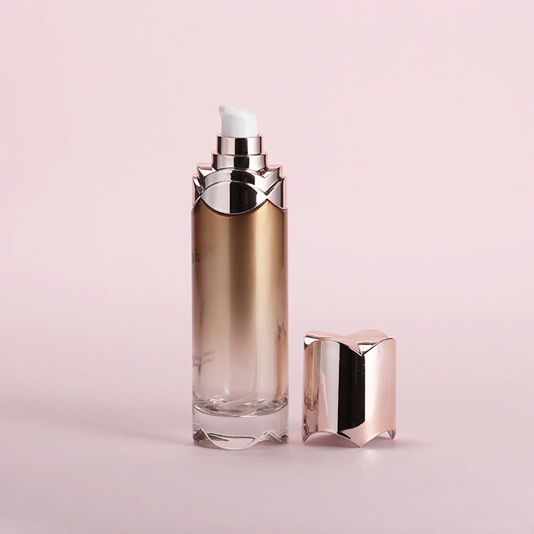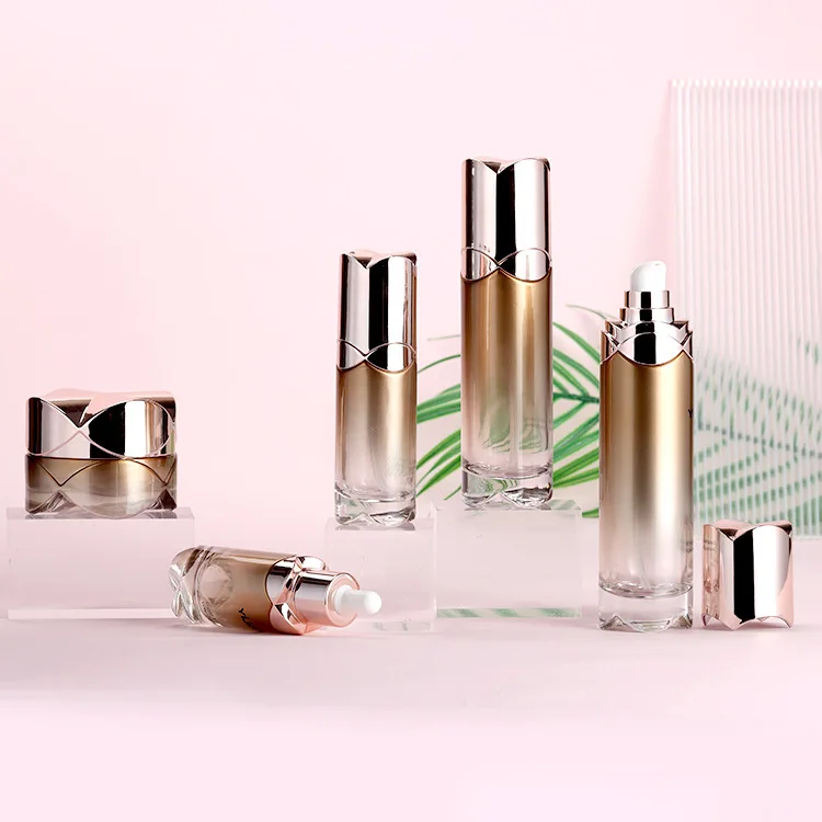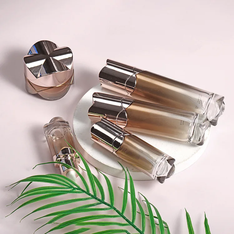 High Quality square Bottle Design with Gold Special Design Lid 20g 50g Jar 40ml 100ml 120ml Pump Bottle