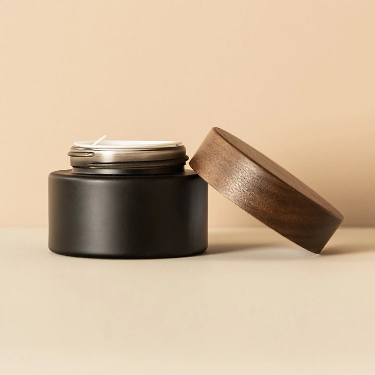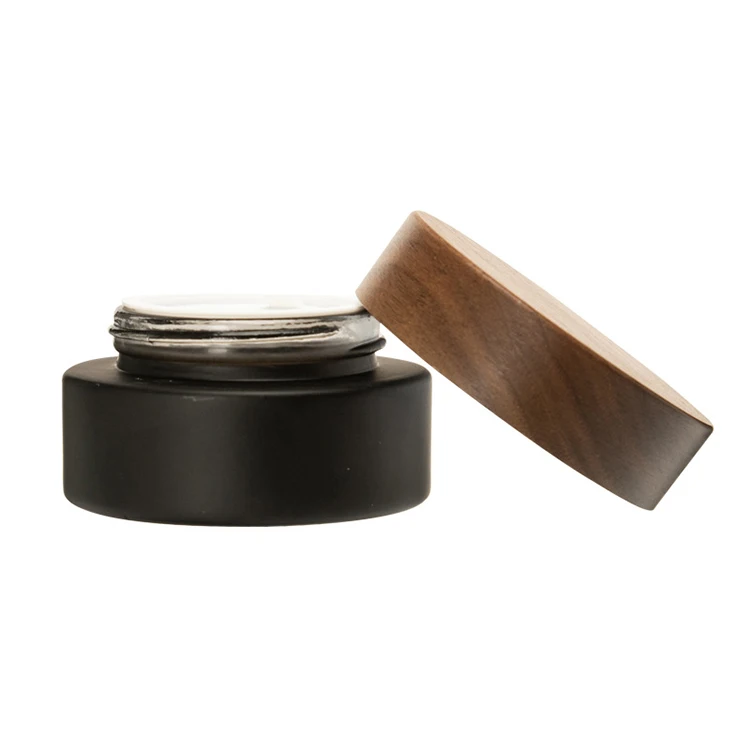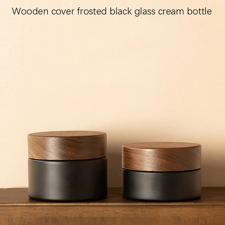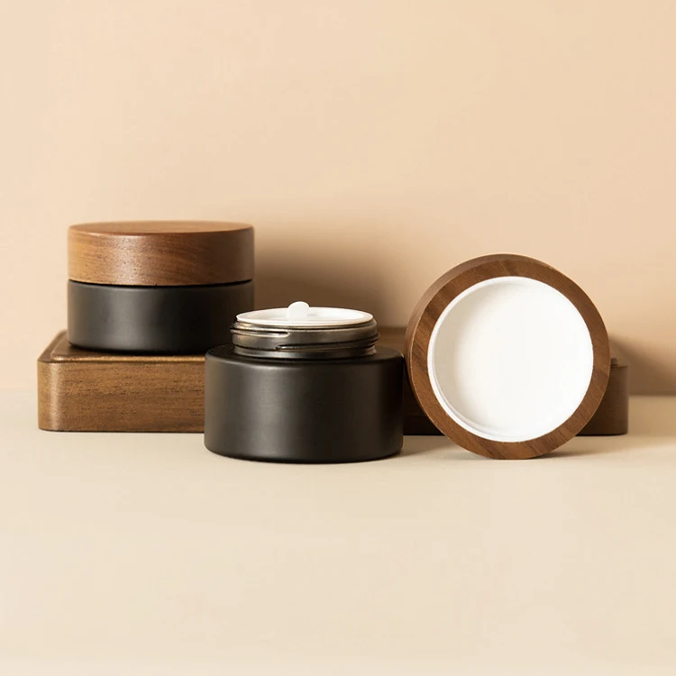 Matte Black 30g 50g 1oz 1.67oz Glass Jar Plastic Walnut Wooden Cap Wood Cosmetic Packaging for Skin Care Cream Jar Container