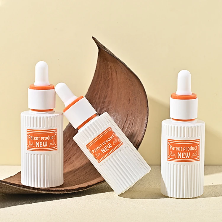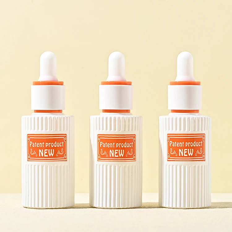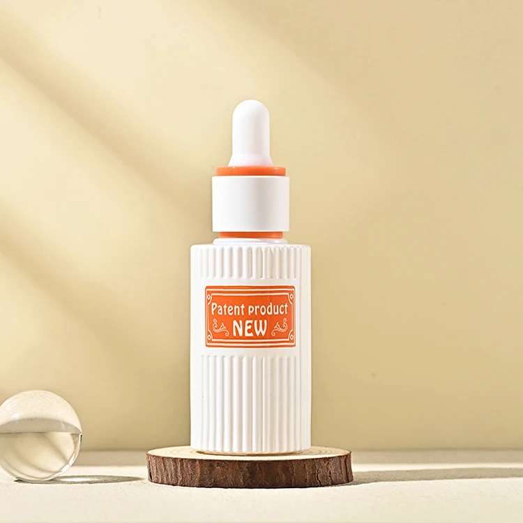 Very Beautiful and Exquisite 30ml 1OZ Glass Packaging Design Shiny White Bottle and Striped Push Dropper Design