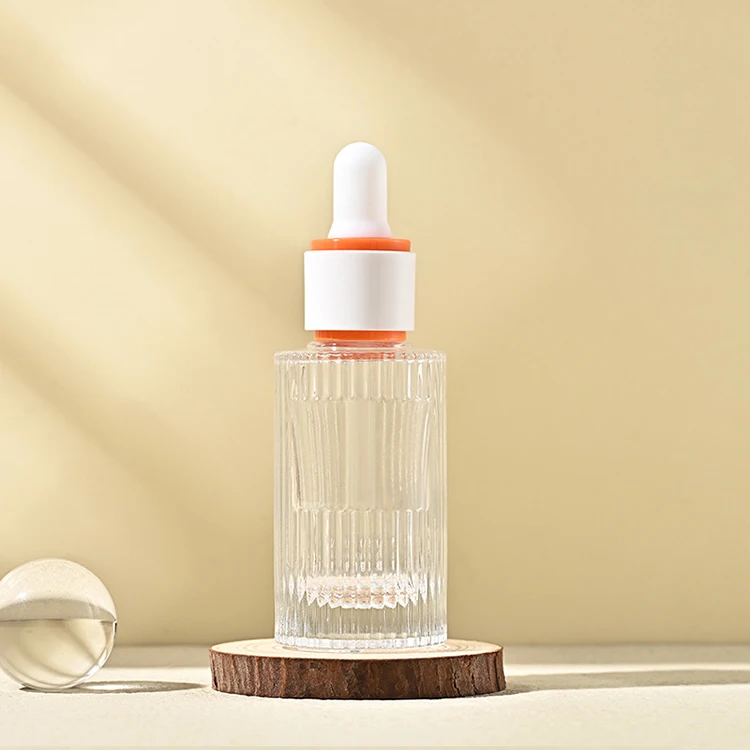 30ml White Push Dropper Thick Bottom Glass Bottle Feels Great with Special Striped Cap Design