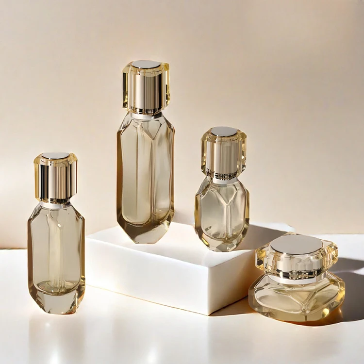 High-End 50g Acrylic Cap Lotion Essence Bottle New Polygon Thick Bottom Cosmetics Packaging Eye Drop Face Cream Jar