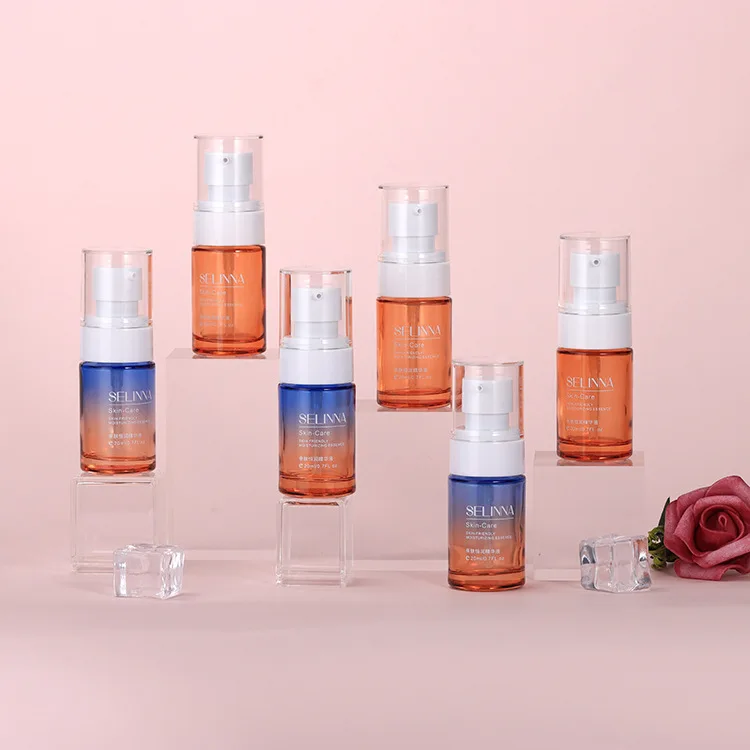 Very Good Quality Luxury Glass Clear Round Cosmetic Skincare Packaging 30ml Lotion Pump Bottle