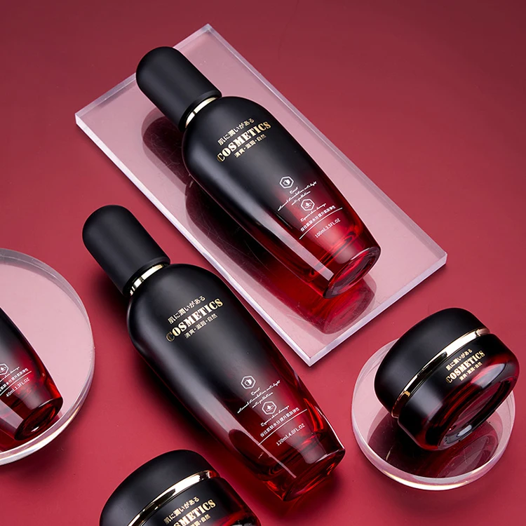 Black Gradient square 20g 50g Glass Jar and Black and Matt Gold Lid Glass Packaging Set 40ml 100ml 120ml
