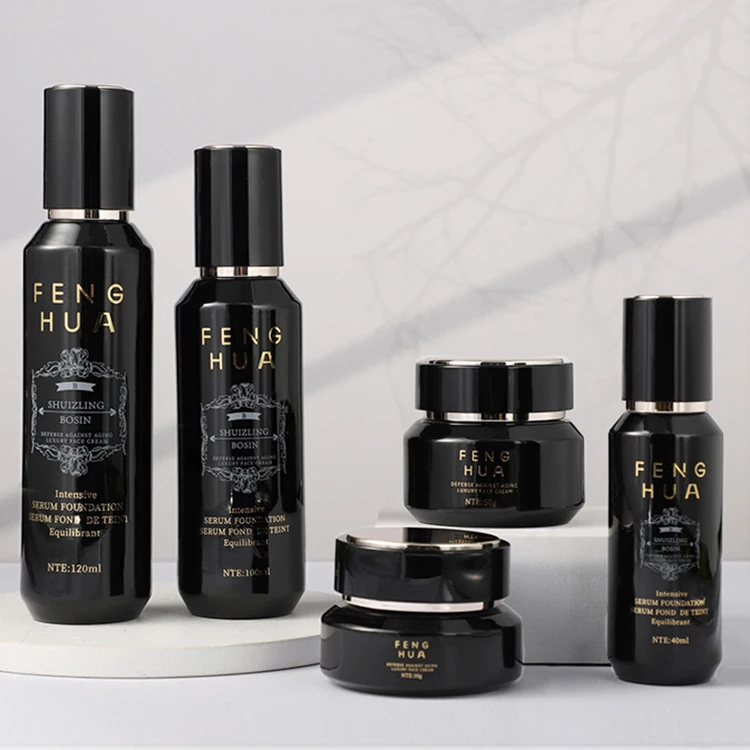 Rocklike Black Glass Cosmetic Containers 50g Cream Jar 30-120ml Lotion Pump Sloping Shoulder Sloping Glass Skin Care Serum