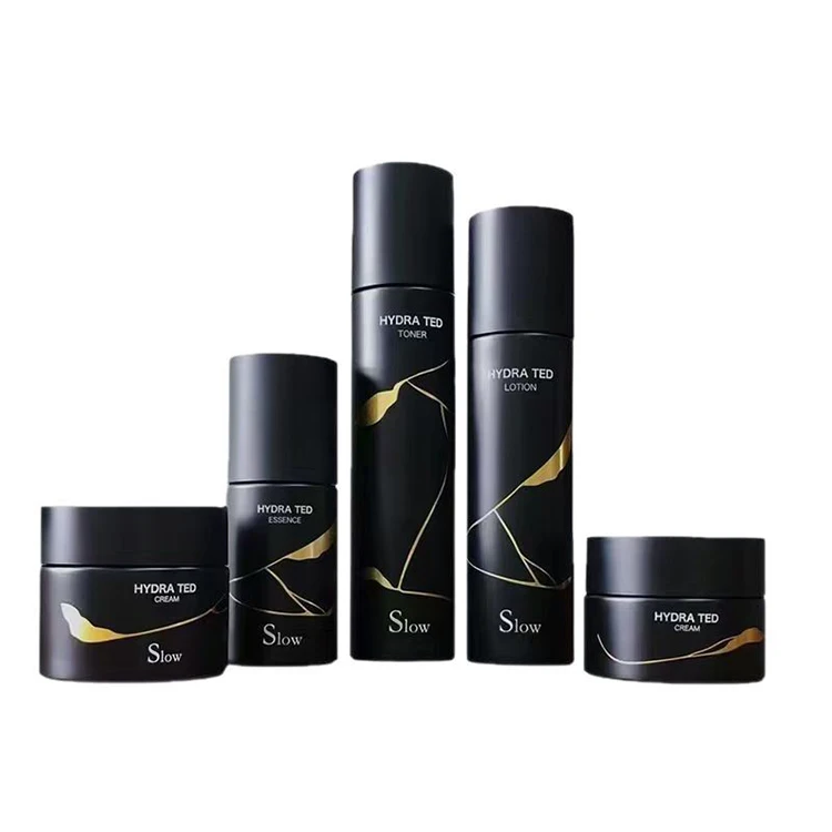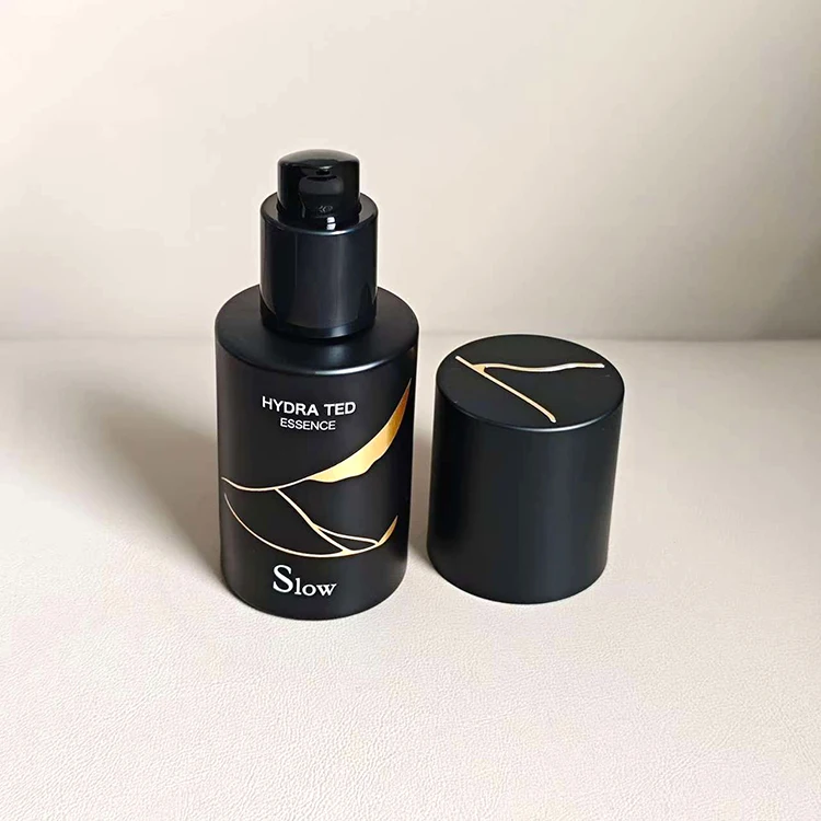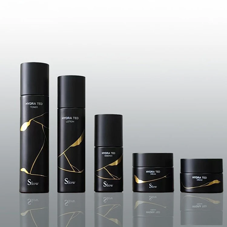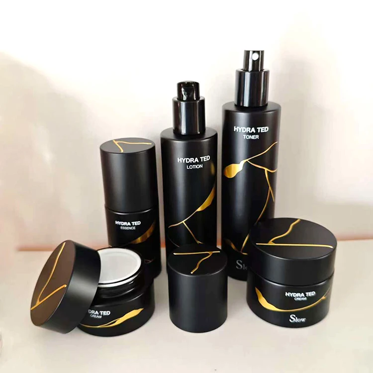 Black Gradient square 20g 50g Glass Jar and Black and Matt Gold Lid Glass Packaging Set 40ml 100ml 120ml