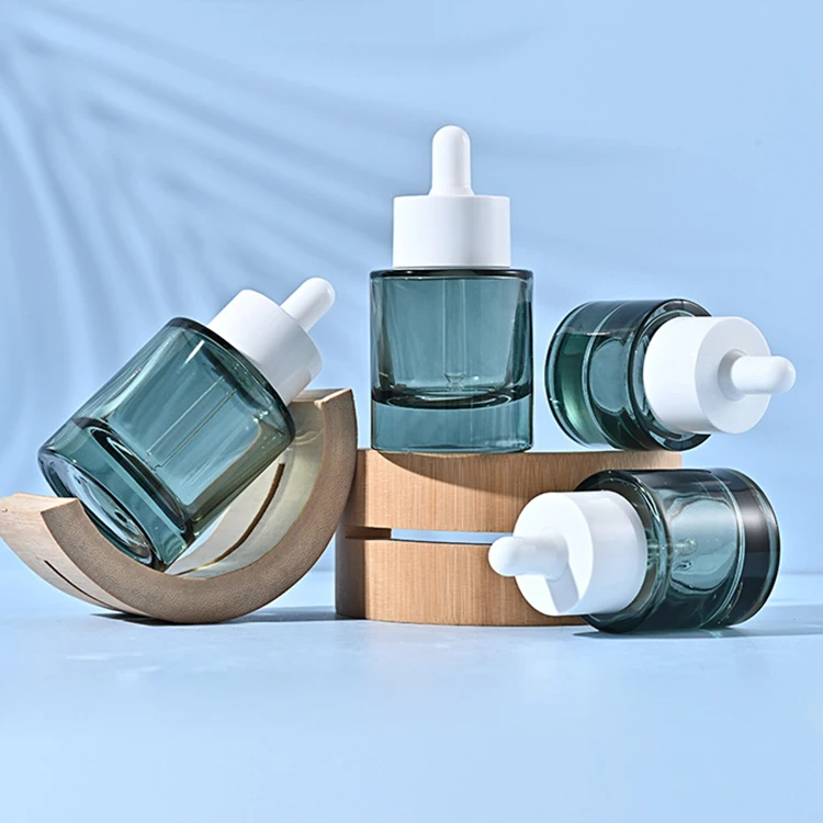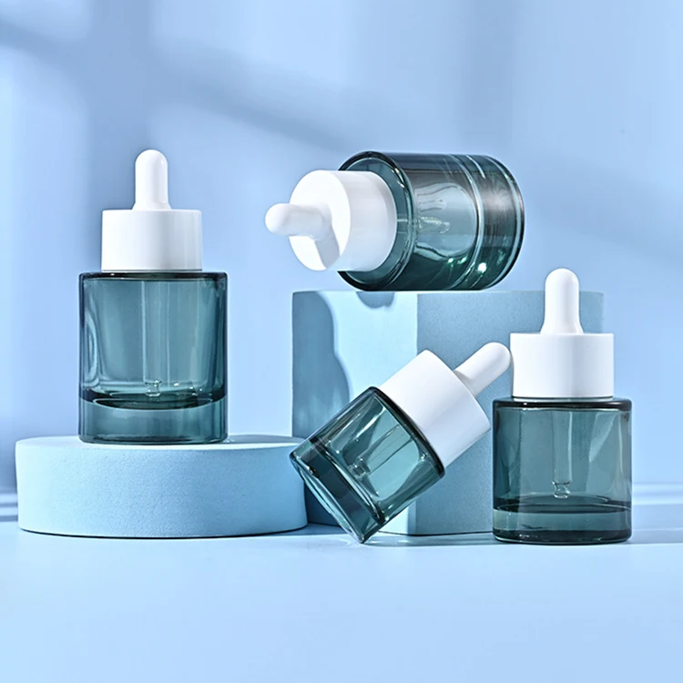 Customized 15ml 20ml 30ml 40ml 50ml Thick-bottomed Wide-ringed Dark Green Serum Bottle Flat-shouldered Essential Oil Bottle