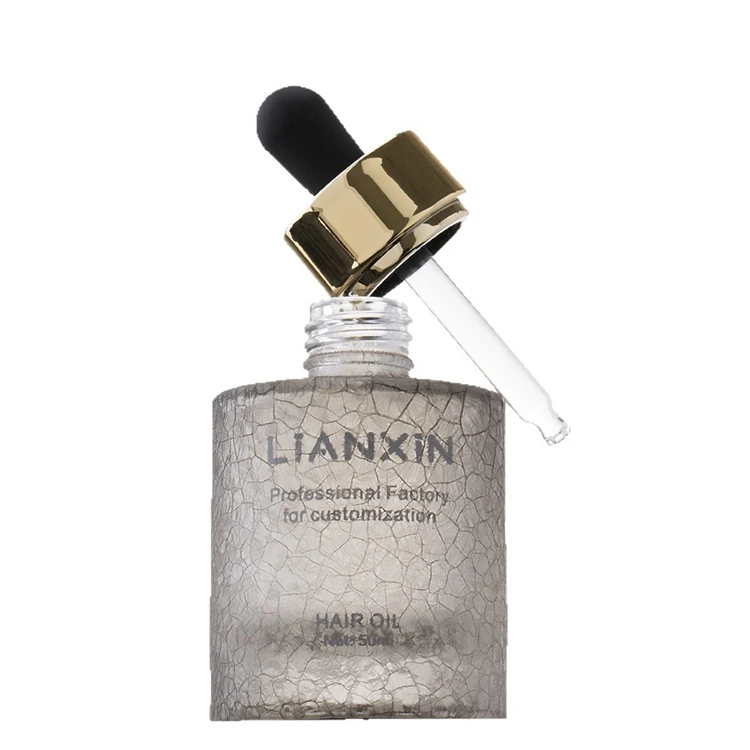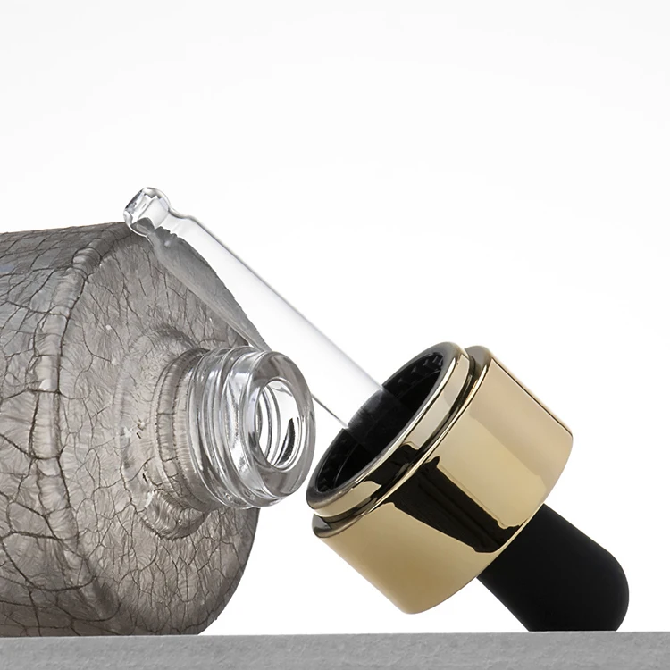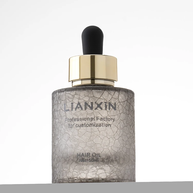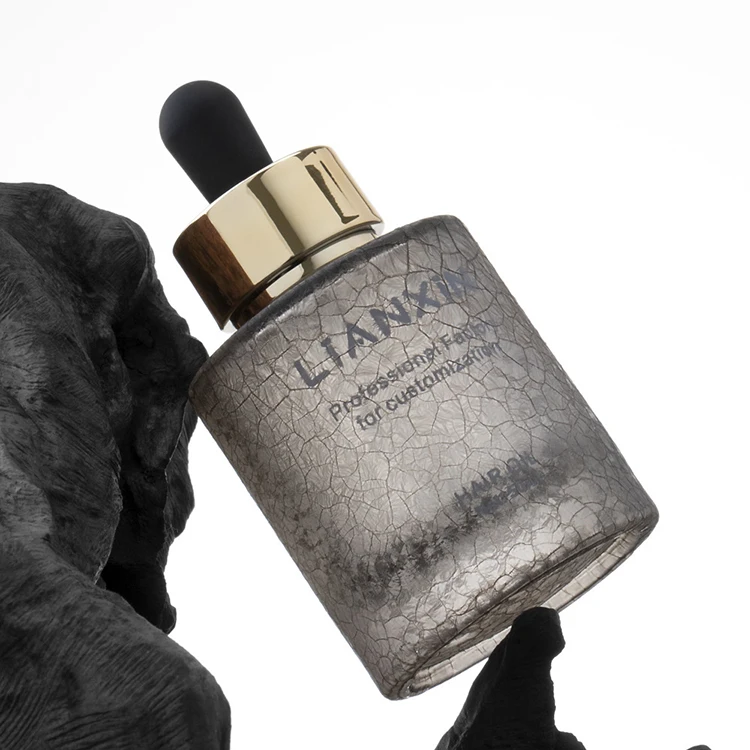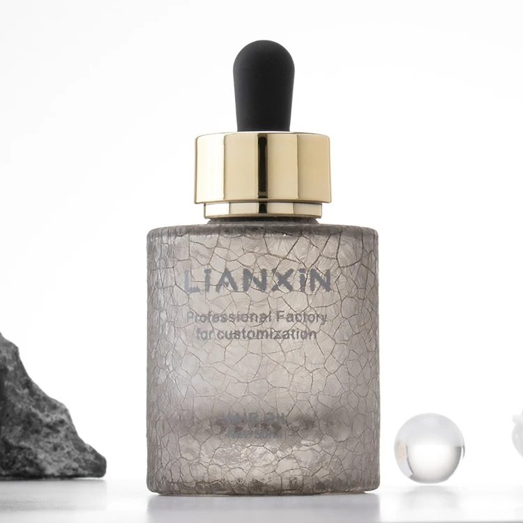 High-end Custom Crackle Paint 30ml 1OZ Thick Bottom Widened Ring Flat Shoulder Essential Oil Bottle Ice Flower Paint