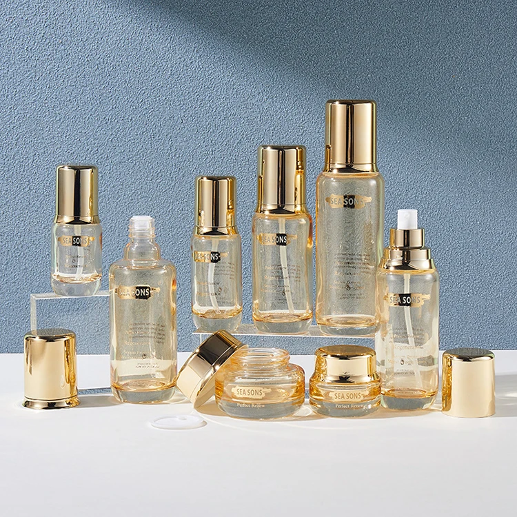 High End 30ml/50ml Glass Bottle 30g/50g/100g Jar Pump Bottle Set for Skin Care Face Cream Lotion Serum Eye Drop for Cosmetics
