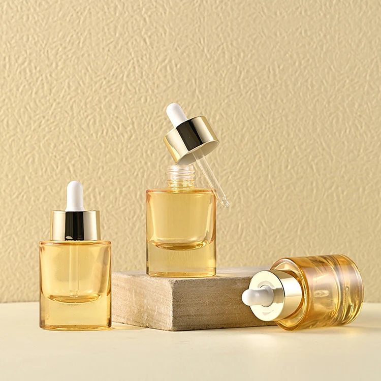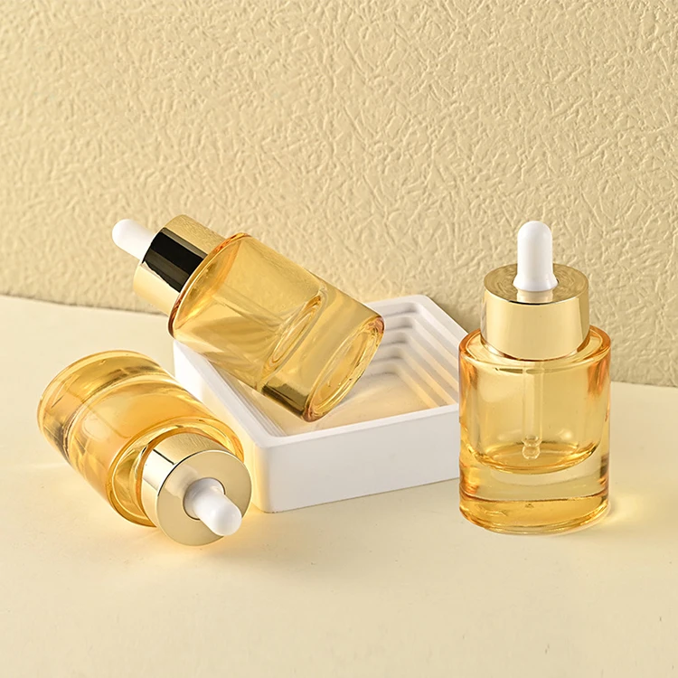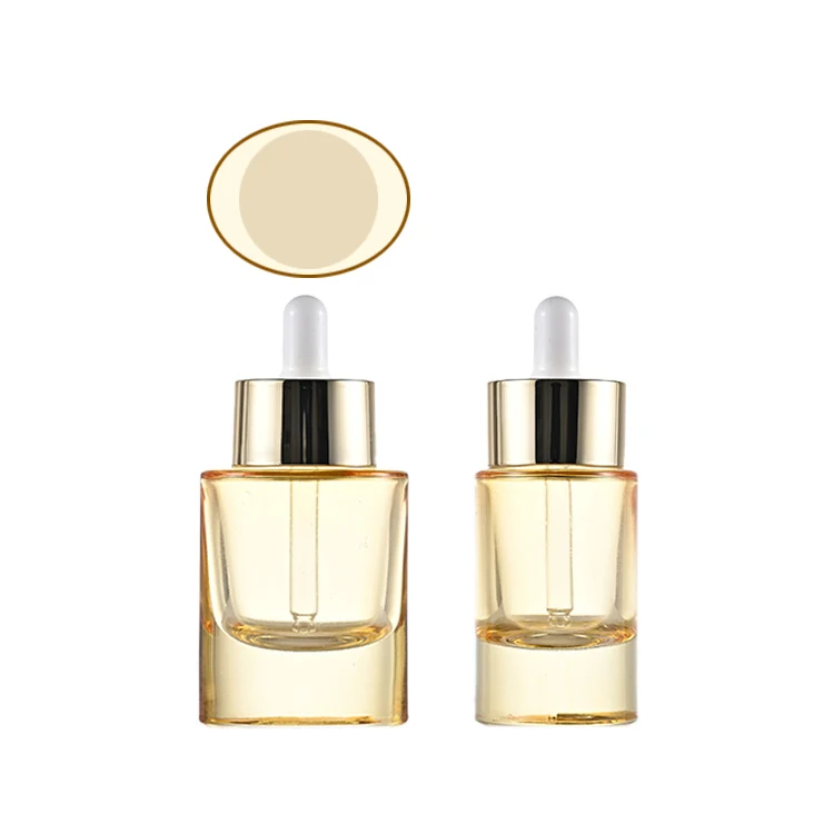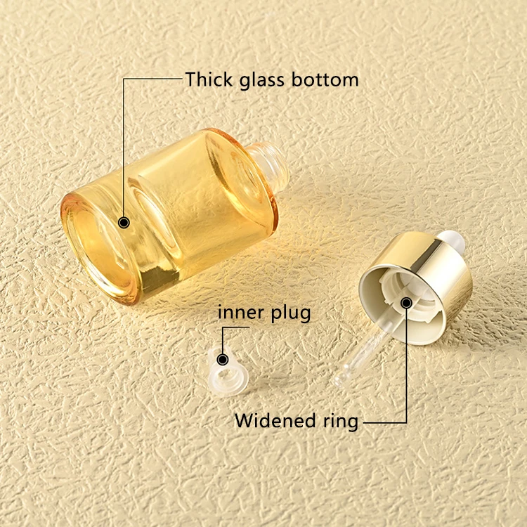 Thick Bottomed Oval 30ml Glass Dropper Bottle with Widened Gold Ring Semi Transparent Yellow Bottle That Can Screen Print logo