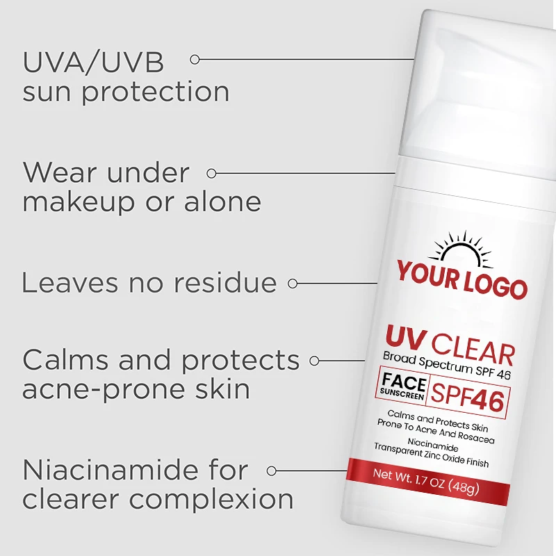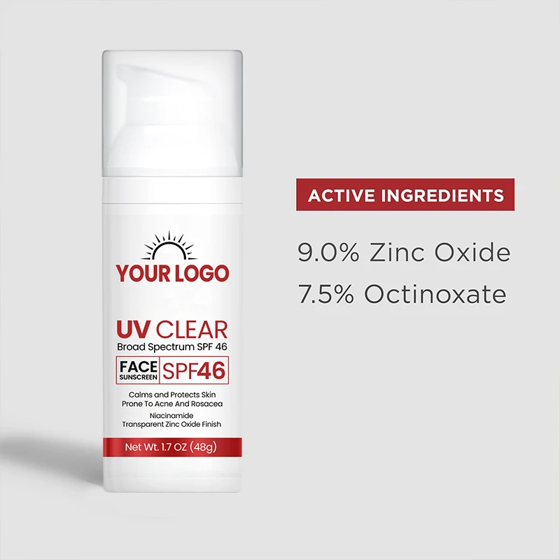 ODM/OEM Organic Herbal Mineral Sunscreen Cream SPF 46 PA+++ Zinc Oxide Hyaluronic Acid & Non-Greasy Moisturizing Hydrating