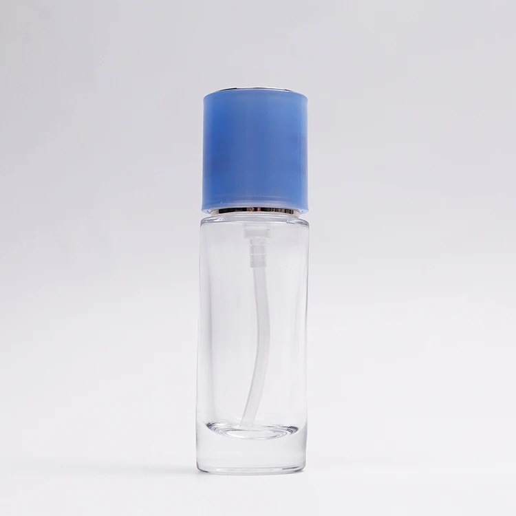 Very Good Quality Luxury Glass Clear Round Cosmetic Skincare Packaging 30ml Lotion Pump Bottle