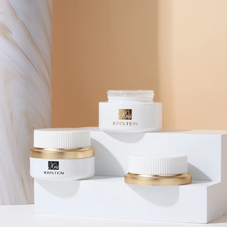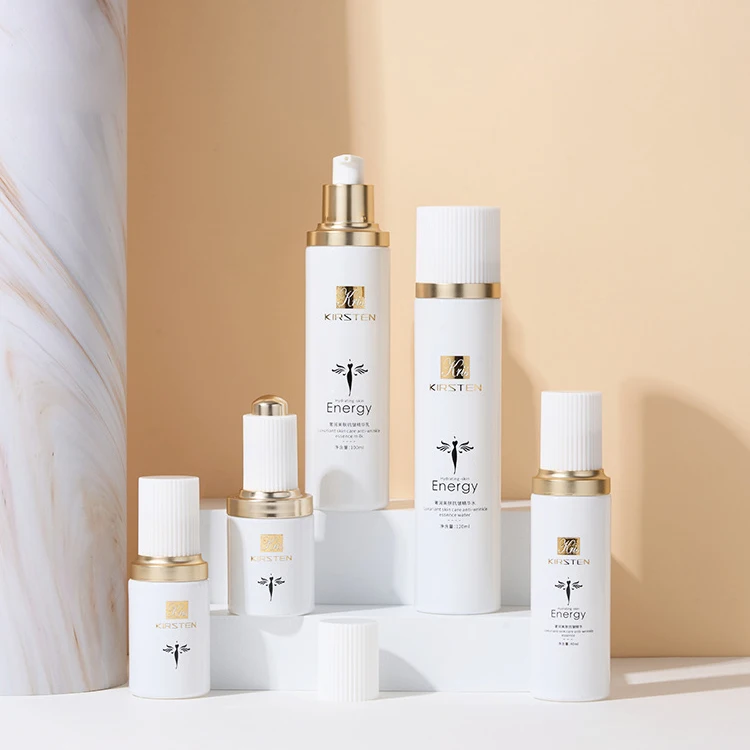 White Stripes and Gold Lid with Luxurious White Set Glass Bottle Hot Stamping Gold LOGO Can Be Customized in Various Colors