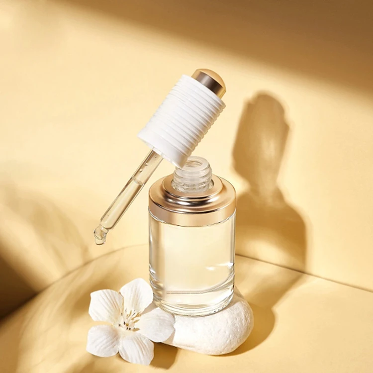 Very Beautiful and Exquisite 30ml 1OZ Glass Packaging Design Shiny White Bottle and Striped Push Dropper Design
