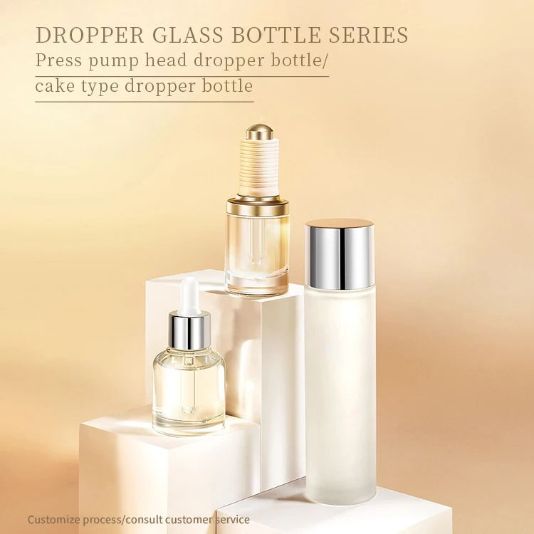 High End 30ml/50ml Glass Bottle 30g/50g/100g Jar Pump Bottle Set for Skin Care Face Cream Lotion Serum Eye Drop for Cosmetics