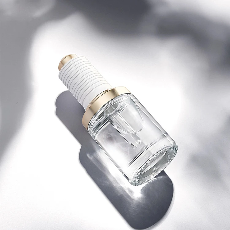30ml White Push Dropper Thick Bottom Glass Bottle Feels Great with Special Striped Cap Design