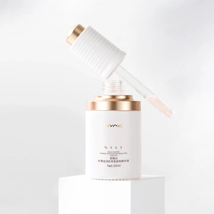 Very Beautiful and Exquisite 30ml 1OZ Glass Packaging Design Shiny White Bottle and Striped Push Dropper Design