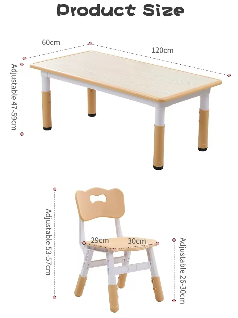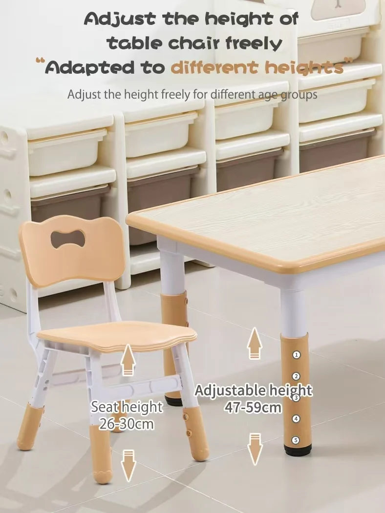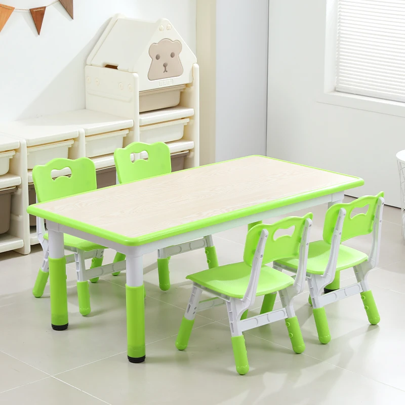Modern Anti-slip Plastic Learning Toddler Table and Chair Set Kindergarten Height-adjustable Solid Wood Desk and Chair for Kids