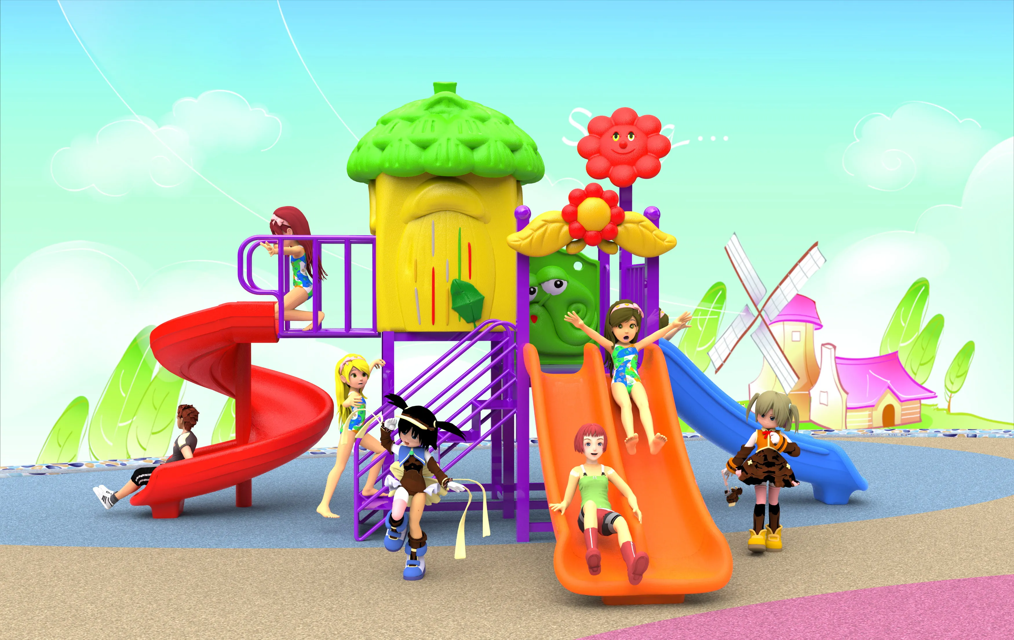 Children Colorful Plastic Paradise Outdoor Playground Slide Cartoon Playhouse