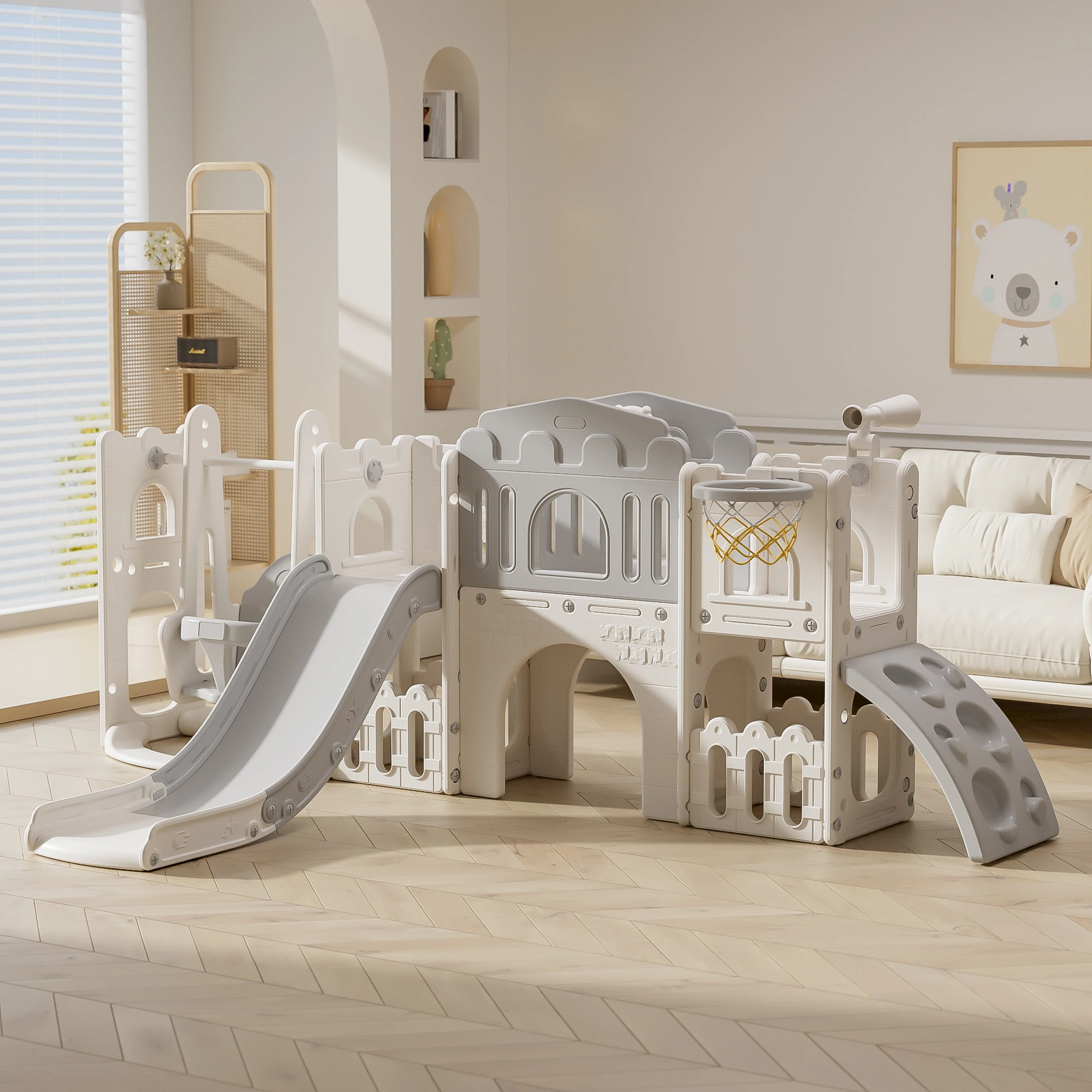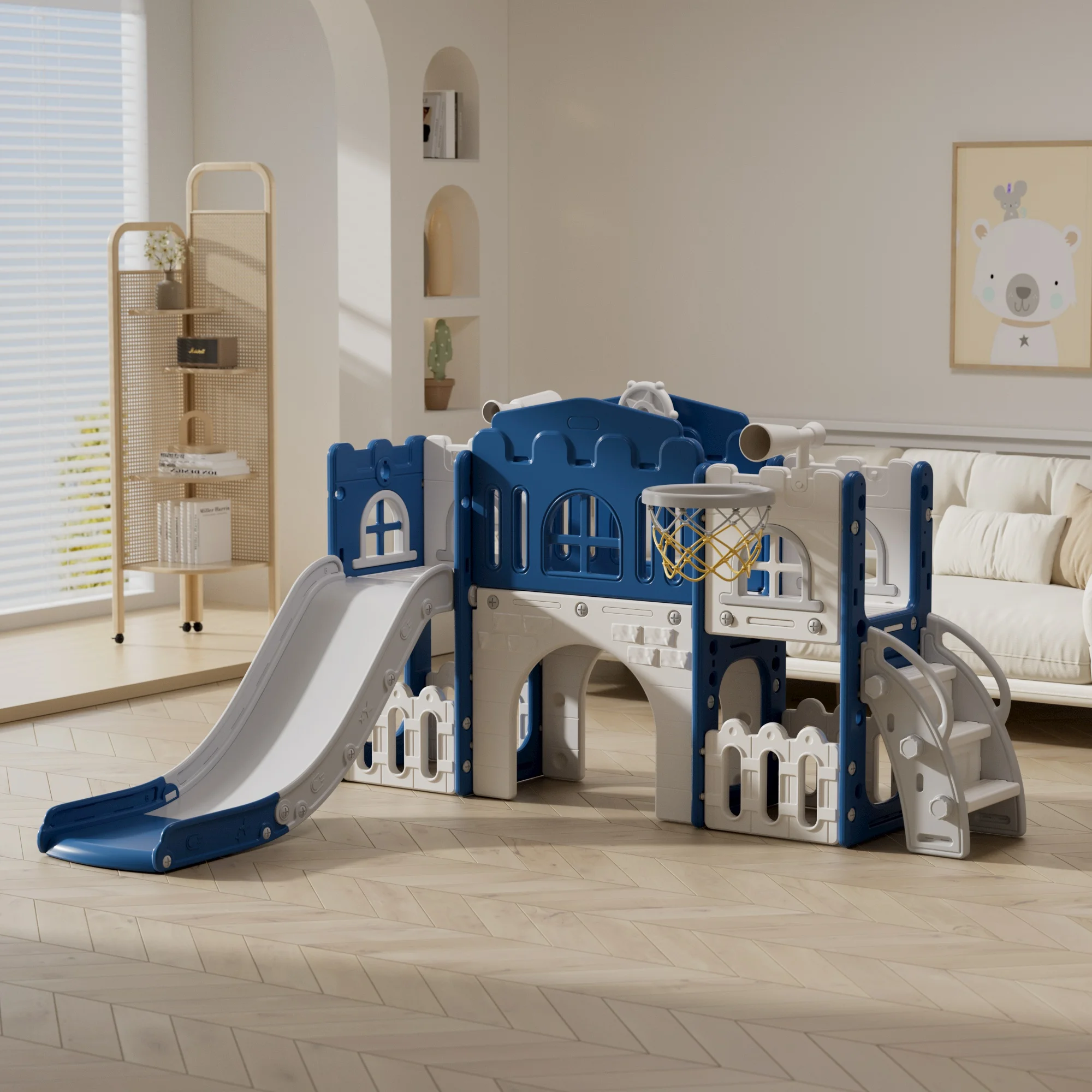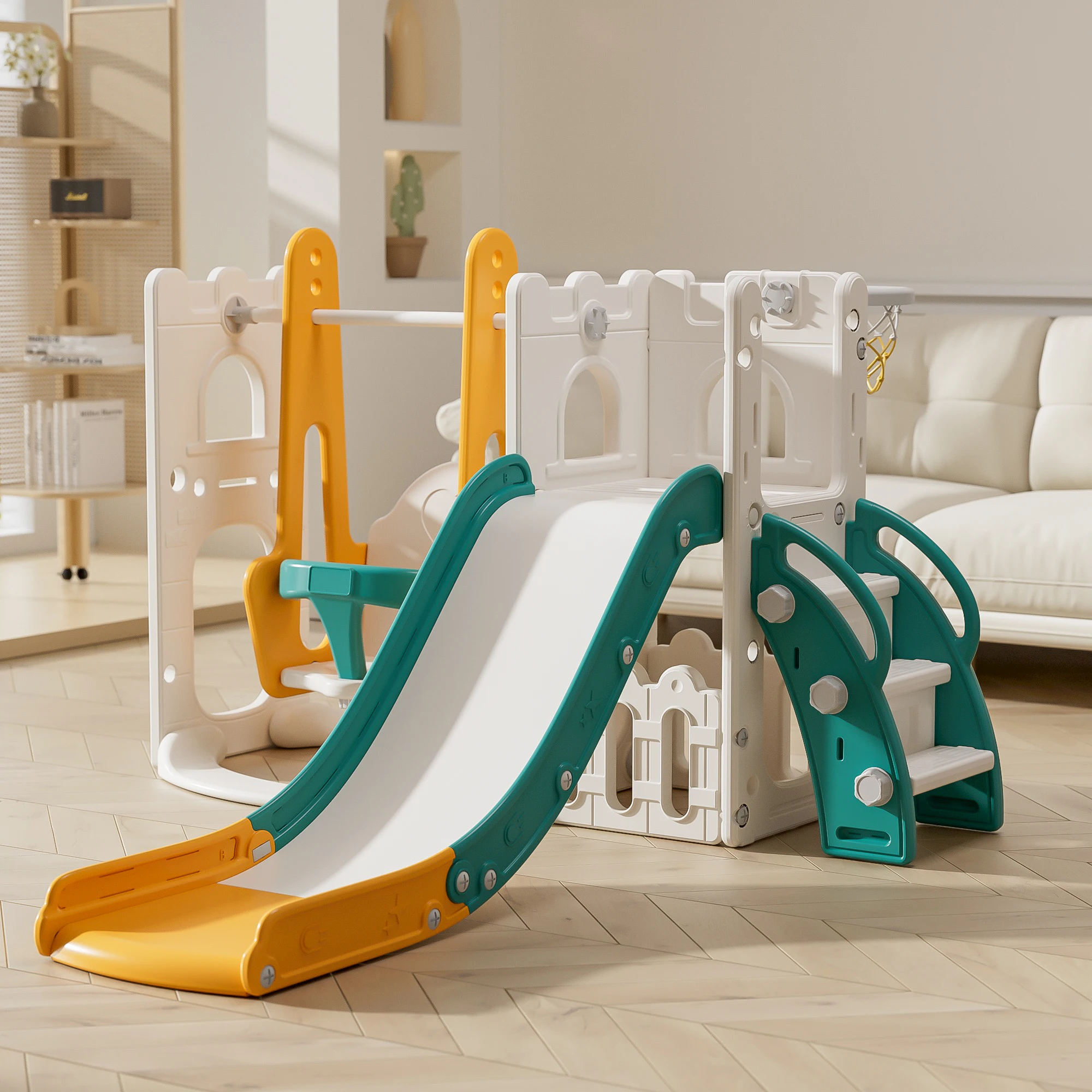 Children Slide Indoor Playground Baby Slide Swing Toys Slide with Basketball Hoop Cheap Colorful Plastic for Kids Kindergarten